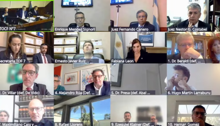 El abogado, Carlos Beraldi, junto a su defendida, la expresidenta Cristina Kirchner, siguieron de manera virtual el juicio por la causa Cuadernos. (Foto: captura YouTube Poder Judicial de la Nación)