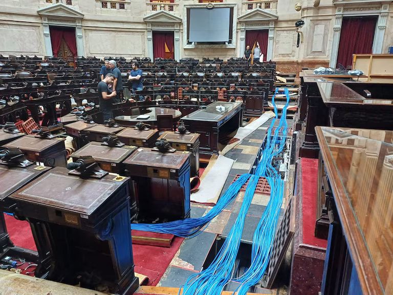 Levantaron el piso y están renovando el cableado que les permite a los legisladores habilitar y emitir el voto. También trabajan sobre las pantallas. El 31 de enero tiene que estar resuelta la obra