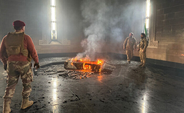 Pese a la promesa de una transición pacífica, combatientes rebeldes prendieron fuego la tumba de Hafez al Assad, padre y predecesor del mandatario derrocado.