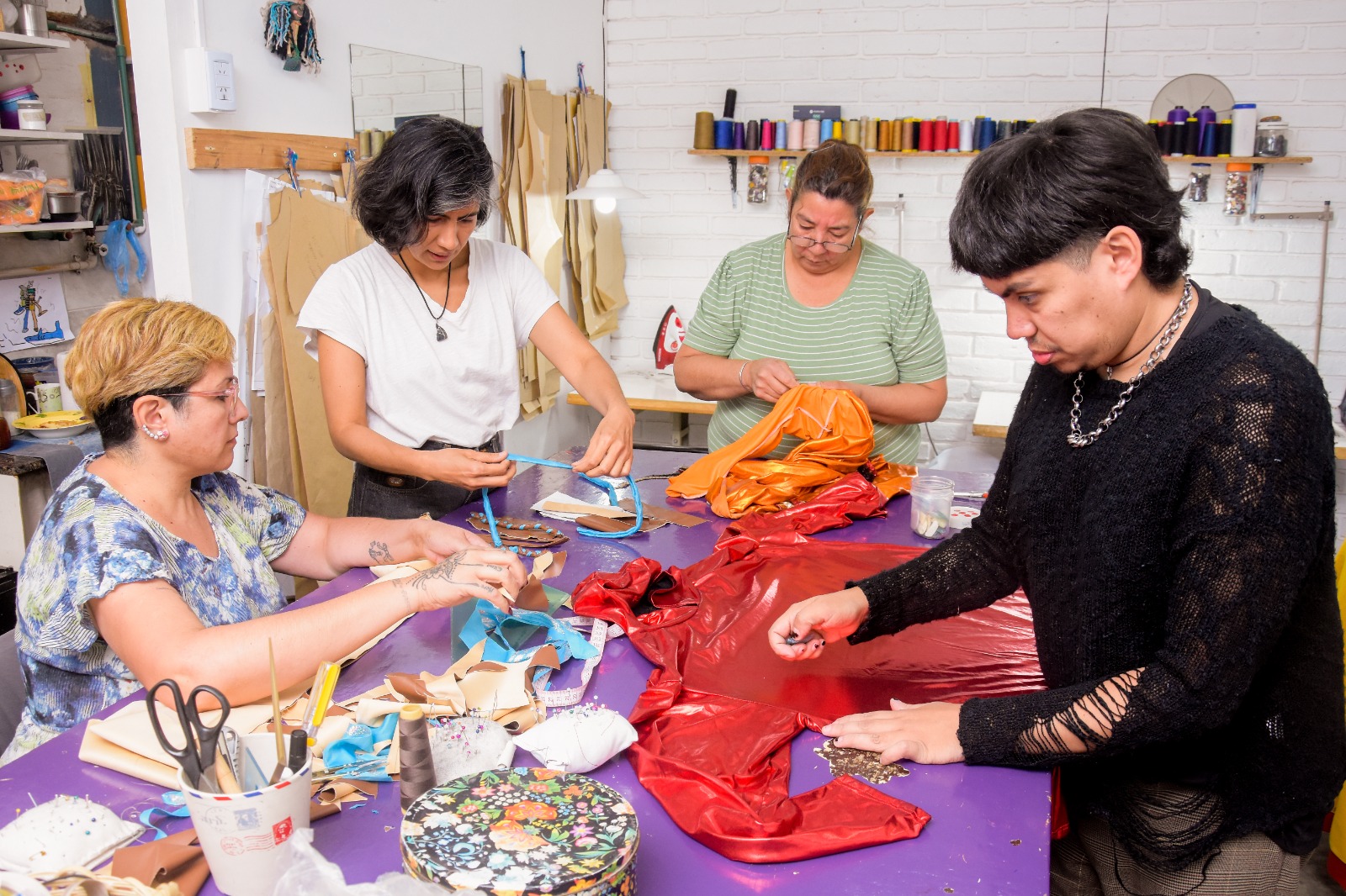En este proceso creativo, cada uno de los miembros del taller tiene una característica. “Lucas es diseñador de indumentaria y se enfoca en moldes y diseño. Rosa tiene una expertiz en máquinas, en corte y confección, mientras Natividad es modista y tiene mucha creatividad”, comentó Cecilia, quien coordina el equipo, es diseñadora de indumentaria, especialista en diseño textil sostenible y agregó que “el trabajo en equipo es muy enriquecedor porque el momento de crear tiene un nivel premium”.