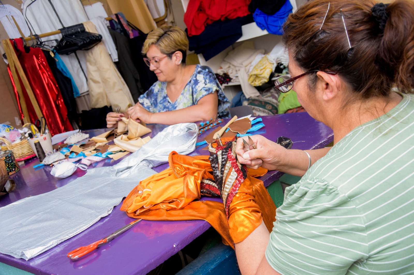 En el taller, este equipo de profesionales disponen de los objetos y prendas que están en la Unidad de Préstamo del Ferro Urbanístico, depósito perteneciente al Ministerio de Turismo donde se encuentran todos los trajes de FNS y se alquilan a grupos teatrales, academias e institutos de danzas, escuelas y demás instituciones que organicen actividades con fines artísticos y culturales.