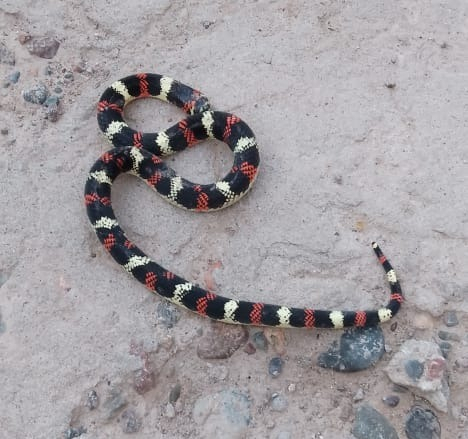 Un vecino halló una serpiente de colores llamativos en la zona de Dos Acequias, departamento San Martín, y el hecho generó preocupación entre los residentes por su parecido con la serpiente coral, una de las más venenosas.