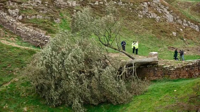 Los condenados talaron el icónico árbol junto al Muro de Adriano y causaron daños valuados en más de 600 mil dólares.