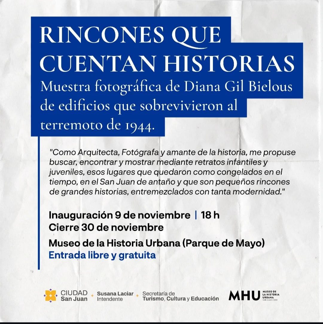 ¡El Museo de la Historia Urbana inaugura una nueva exposición! A partir del 9 de noviembre, vení a descubrir "Rincones que cuentan historias", una emotiva muestra fotográfica de @dianagilbielousfotografia. La exposición estará disponible hasta el 30 de noviembre.
