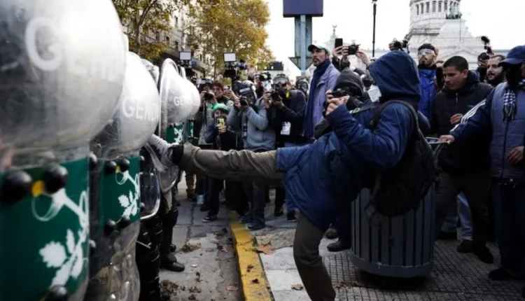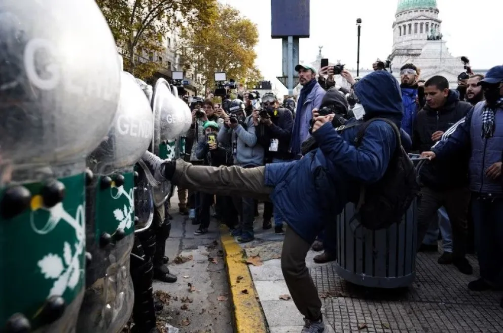 También quisieron cortar la calle Rodríguez Peña, en el cruce con la avenida troncal, pero rápidamente los efectivos de seguridad aplicaron el protocolo. Además, a lo largo de la tarde, pidieron a través de un megáfono que los protestantes que suban a la vereda.