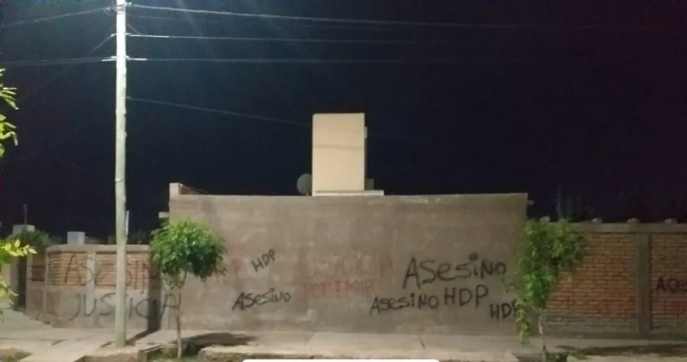 Las inscripciones con insultos y pedidos de justicia aparecieron en las viviendas de algunos de los imputados. La Policía refuerza la seguridad ante posibles conflictos en el barrio. Este viernes se realizará la audiencia de formalización de la causa, mientras continúa prófugo uno de los sospechosos.