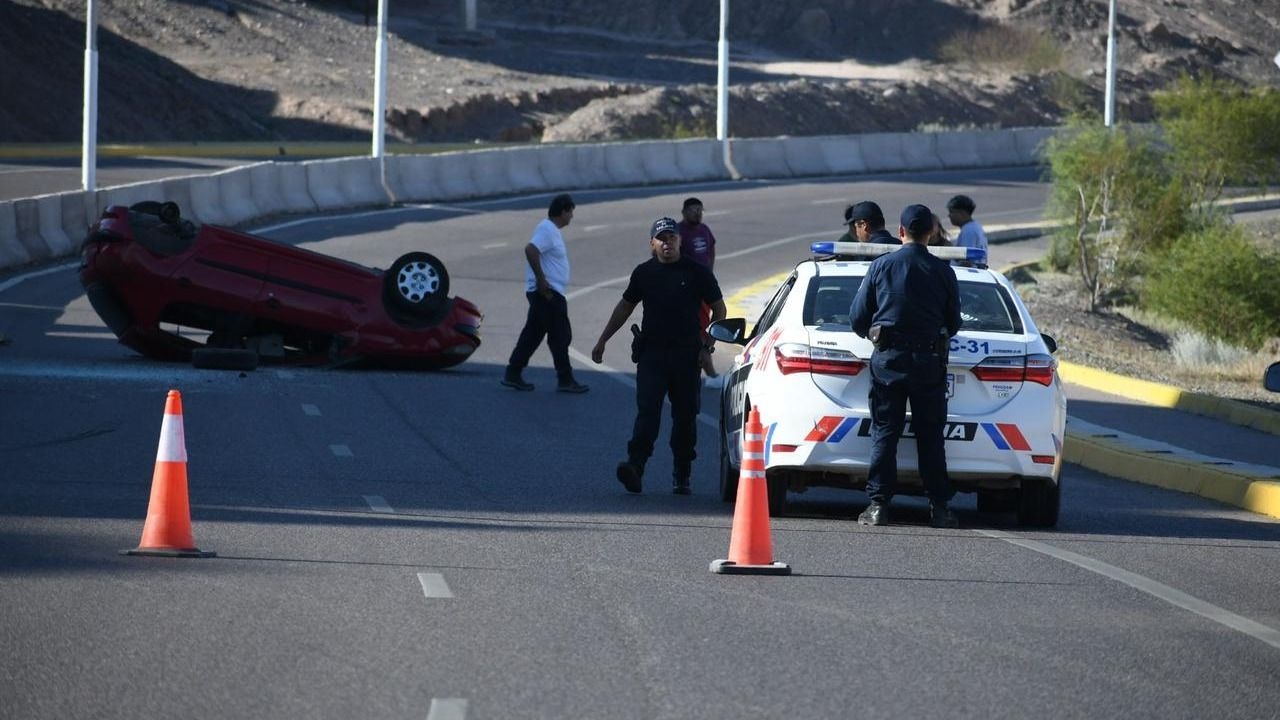 Un Peugeot 206 rojo volcó esta tarde en la Ruta del Sol, a la altura de la ex Cerámica San Juan, en el departamento Rivadavia.