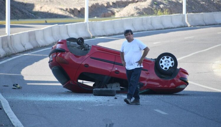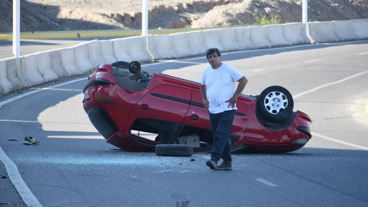 Un Peugeot 206 rojo volcó esta tarde en la Ruta del Sol, a la altura de la ex Cerámica San Juan, en el departamento Rivadavia.