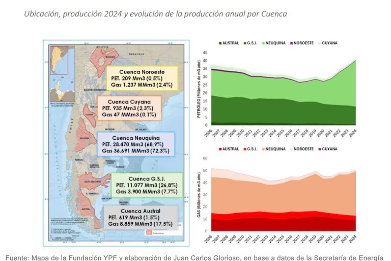 Otro destaca que este año la Argentina “superará a Colombia, que produjo casi 800.000 barriles diarios (b/d) el pasado otoño, como tercer productor de crudo de Sudamérica. Sólo Venezuela, que produce cerca de 1 millón de barriles diarios, y Brasil, que supera los 3 millones de barriles diarios, bombearán más. Javier Milei, presidente libertario de Argentina, califica Vaca Muerta de ‘panacea’ y desea que los exportadores de energía del país prosperen. Si lo hacen, podrían revertir décadas de declive económico”.