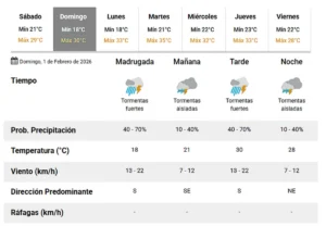 La inestabilidad no dará tregua. Para el domingo se anticipa otra jornada con condiciones inestables desde la madrugada hasta la noche. El SMN pronostica una temperatura máxima cercana a los 30°C, con probabilidad de nuevas tormentas a lo largo del día.