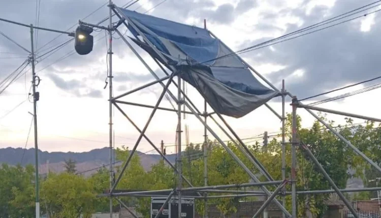 El accidente ocurrió en la mañana de este martes 4 de marzo en Calingasta, cuando un operario de una empresa de sonido cayó desde más de cuatro metros de altura mientras desmontaba una torre de parlantes que se había instalado para los festejos del Carnaval.