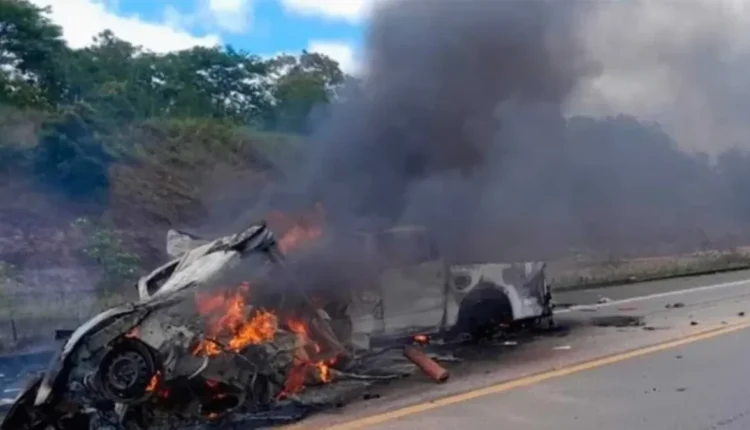 El siniestro involucró a una camioneta Chevrolet S10 y a un utilitario Fiat Dobló que, por causas que aún intenta establecer la Policía Federal de Caminos (PRF), chocaron de frente y se incendiaron por completo de manera inmediata.