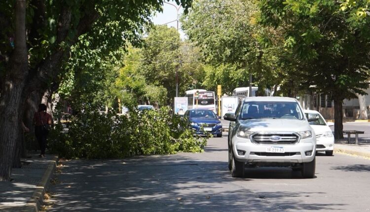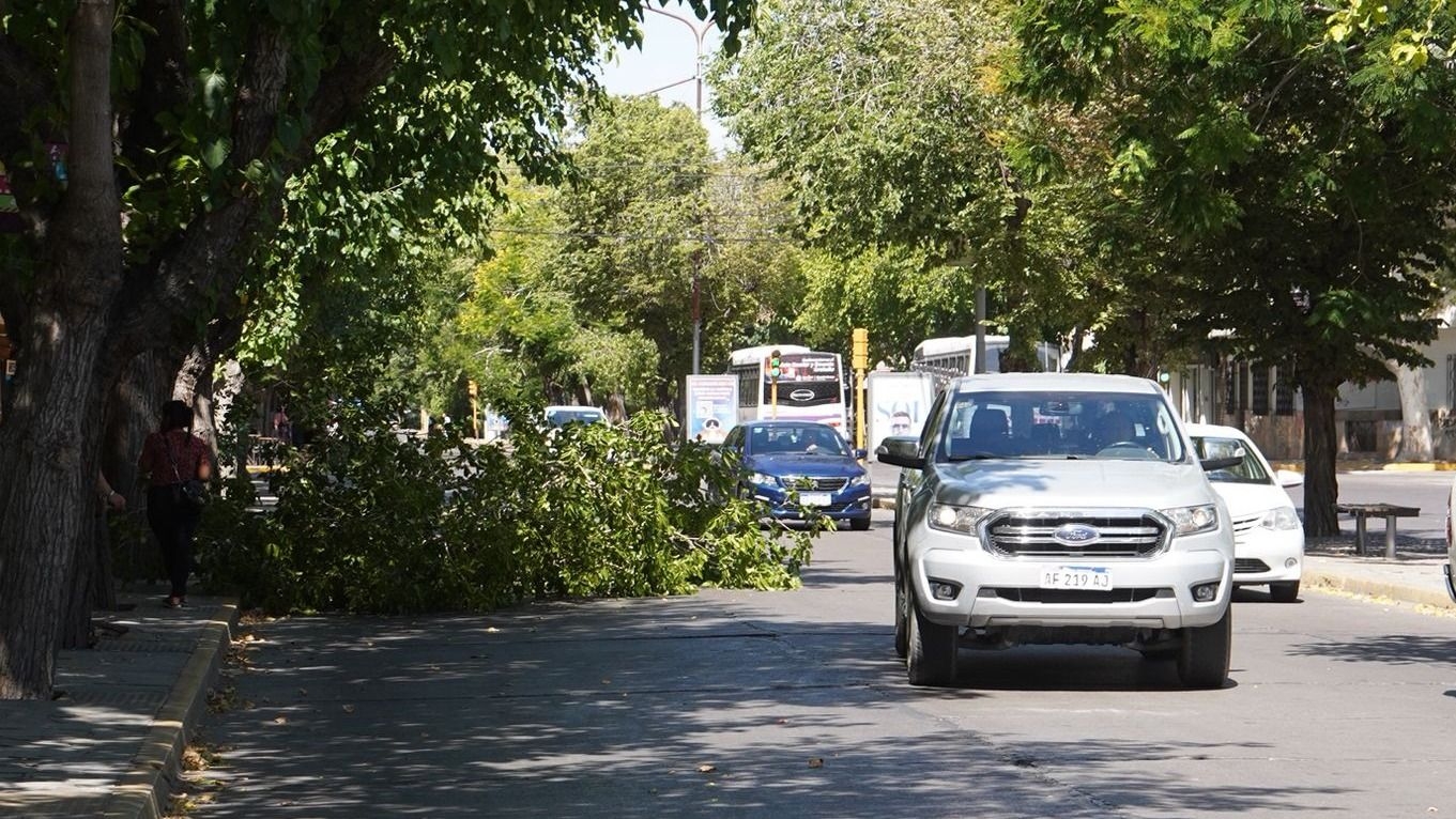 Una rama de gran porte se desprendió este martes por la siesta de un árbol ubicado sobre avenida Libertador, entre Catamarca y avenida Alem, frente a la Escuela Superior Sarmiento, en Capital.