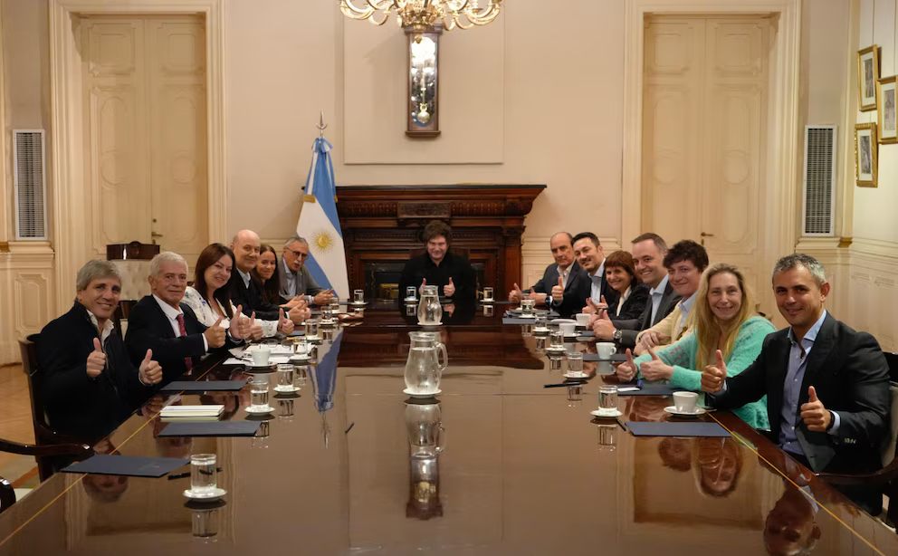 Estaban presentes el jefe de Gabinete, Guillermo Francos, y los ministros Luis Caputo (Economía), Federico Sturzenegger (Desregulación), Mario Lugones (Salud), Luis Petri (Defensa), Mariano Cúneo Libarona (Justicia), Sandra Pettovello (Capital Humano). También estarán el vocero presidencial, Manuel Adorni y otros funcionarios clave de la cúpula presidencial.