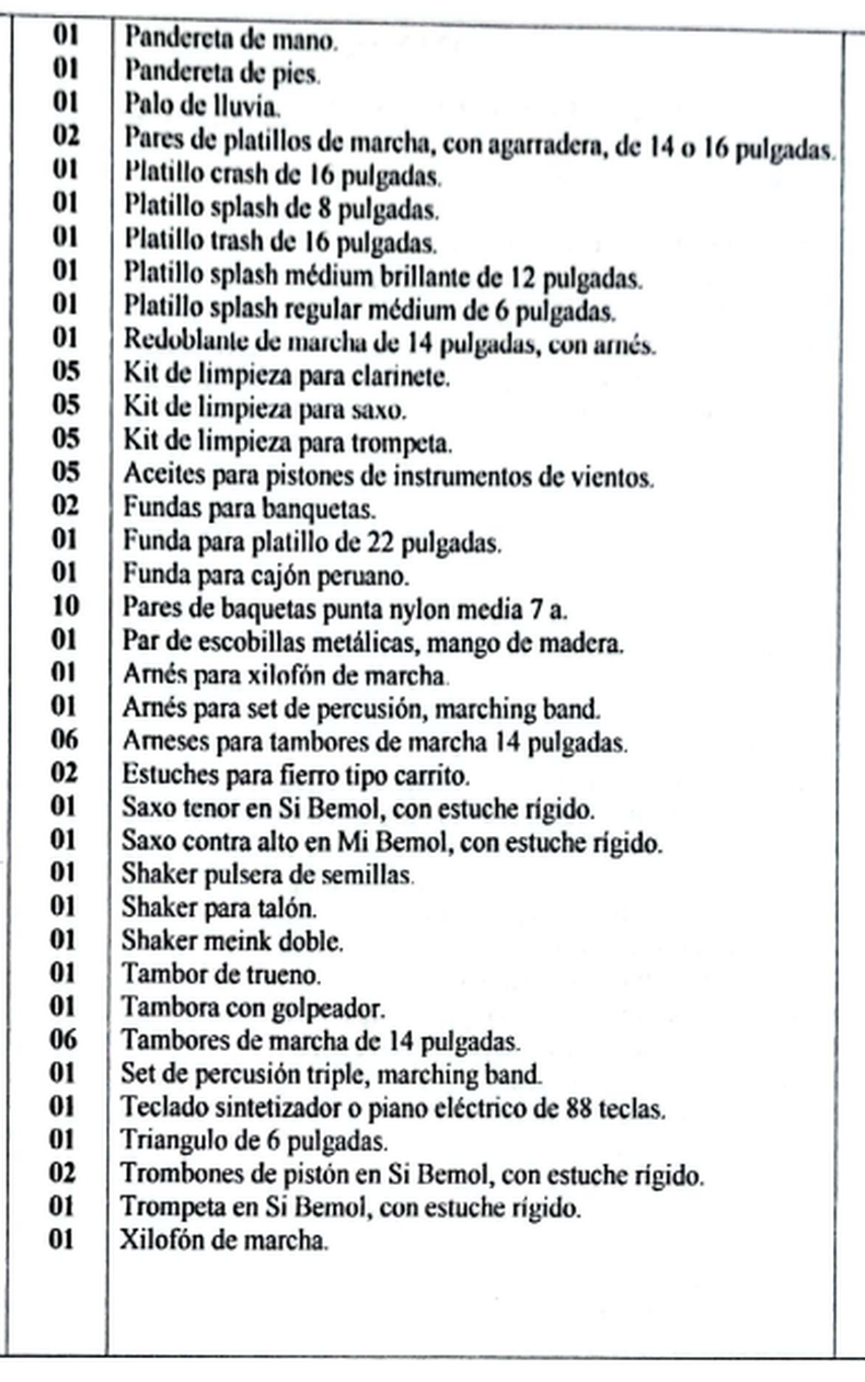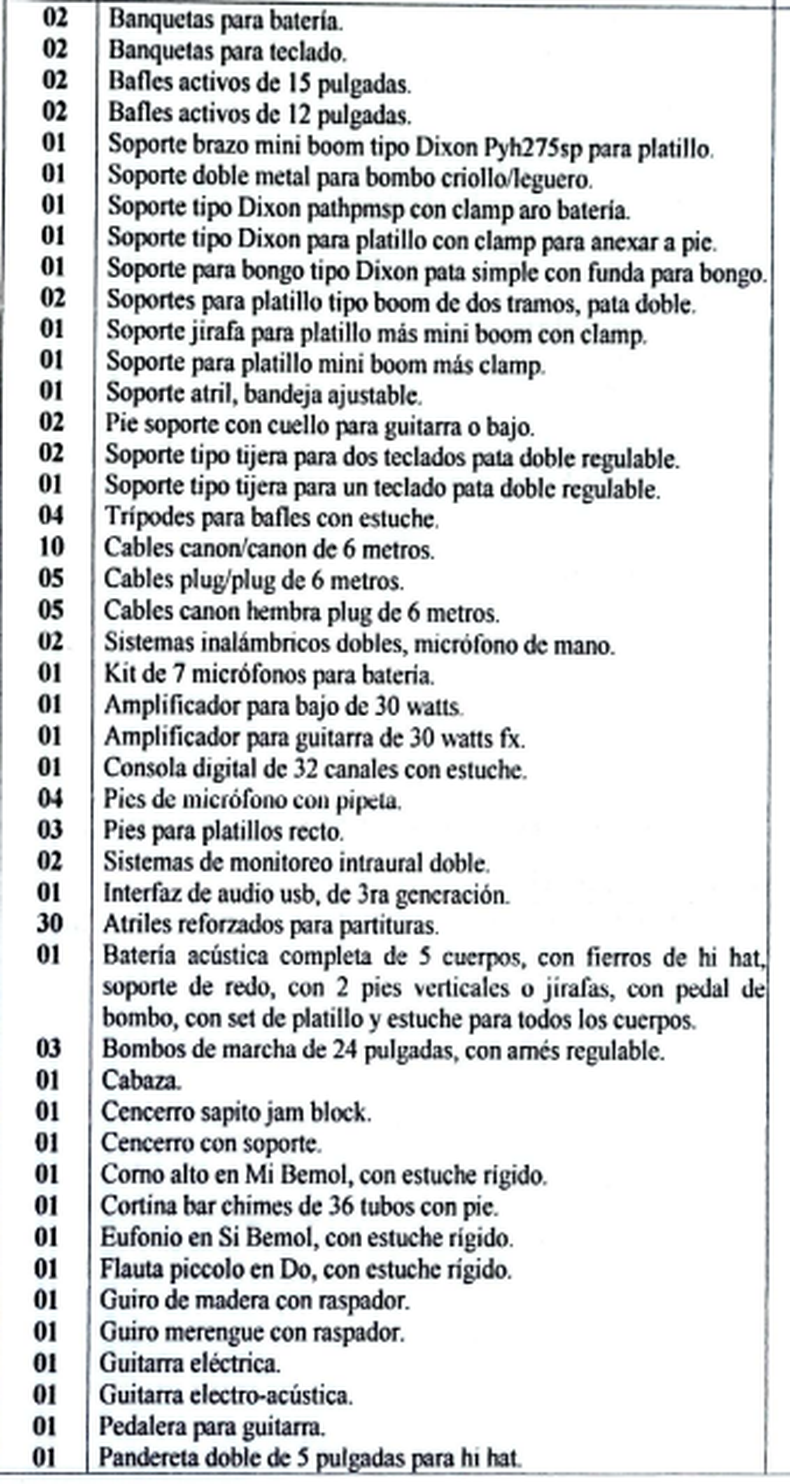 Entre los nuevos elementos que se adquirirán figuran desde guitarras eléctricas y flautas hasta platillos, tambores, saxofones, trombones, kits de micrófonos, banquetas y soportes. La intención es que la Banda vuelva a escena renovada y equipada para seguir siendo parte esencial de actos oficiales, escolares y eventos culturales.