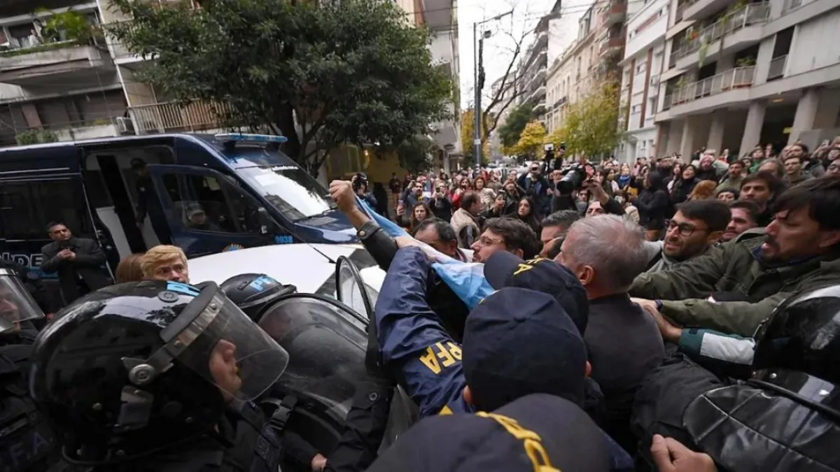 El operativo se desató el sábado alrededor de las 14, cuando unas 50 personas ingresaron al edificio a través del local gastronómico “Un café con Perón”. Según la Policía, los militantes violentaron una puerta, retuvieron a agentes federales, y colgaron banderas desde los balcones con las consignas “Si no podés elegir, no hay democracia” y “Defendamos nuestra historia”.