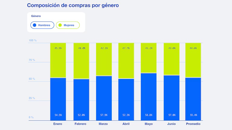 La participación femenina también alcanzó récords en el primer semestre del año con el 44,6% de las operaciones y un pico del 48% en el mes de febrero.