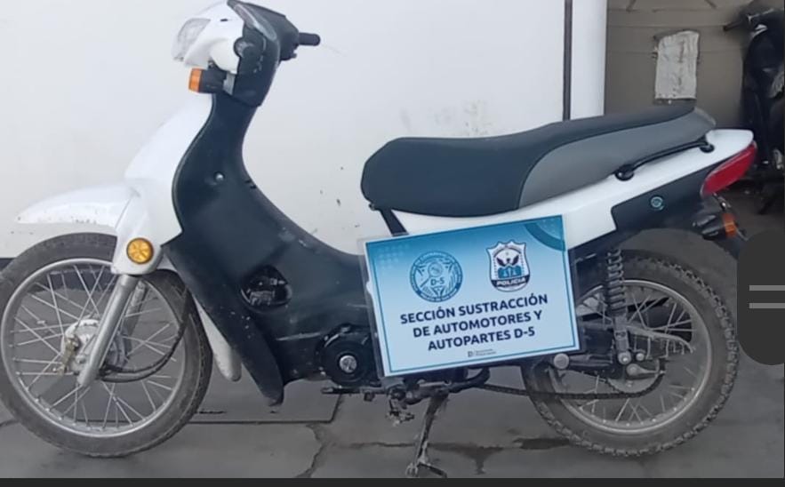 En otro hecho, ocurrido en la madrugada del 13 de abril, fue denunciado el robo de una motocicleta Siam QU 110 cc color blanca al ciudadano Gabriel Mote. Tras tareas investigativas, el 15 de abril, se identificó como presunto autor a un sujeto de apellido Quiroga, quien habría vendido el rodado en el departamento Pocito. La motocicleta fue recuperada y Quiroga fue aprehendido, quedando a disposición de la UFI Delitos contra la Propiedad.
