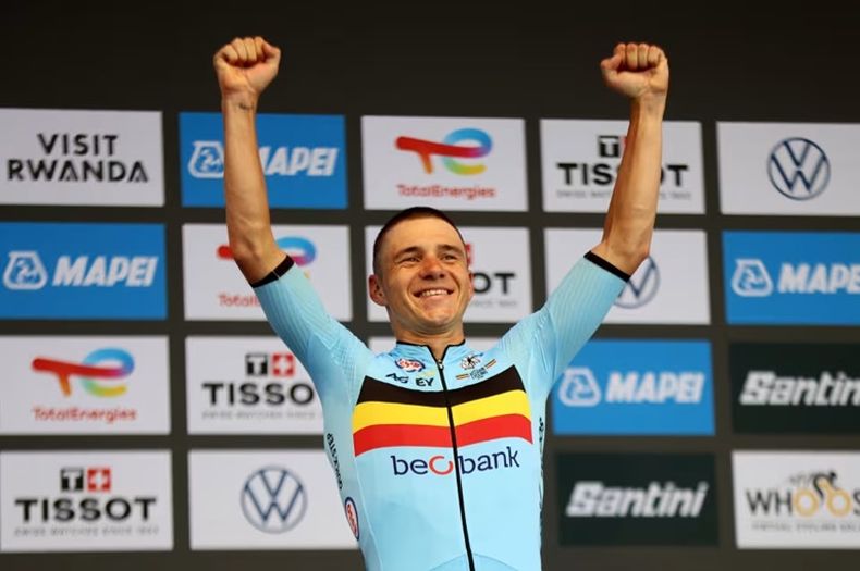 La imagen que marcó la jornada fue cuando dobló a Tadej Pogaar en el tramo final, confirmando su dominio absoluto. Al cruzar la meta, registró un tiempo de 49:46, con una velocidad media de 48,94 km/h, sacando más de un minuto al australiano Jay Vine, segundo clasificado, mientras que el también belga Ilan van Wilder completó el podio a 2:36.