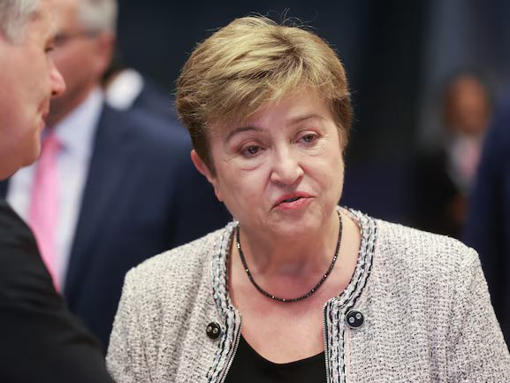 La directora gerente del Fondo Monetario Internacional, Kristalina Georgieva, en la reunión este jueves de ministros de Finanzas del Eurogrupo en Luxemburgo. EFE/EPA/OLIVIER HOSLET