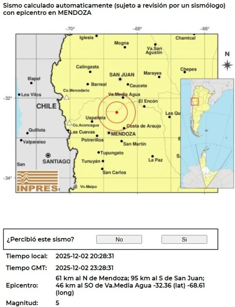 Un sismo de magnitud 5 sacudió San Juan y tuvo epicentro en el límite con Mendoza