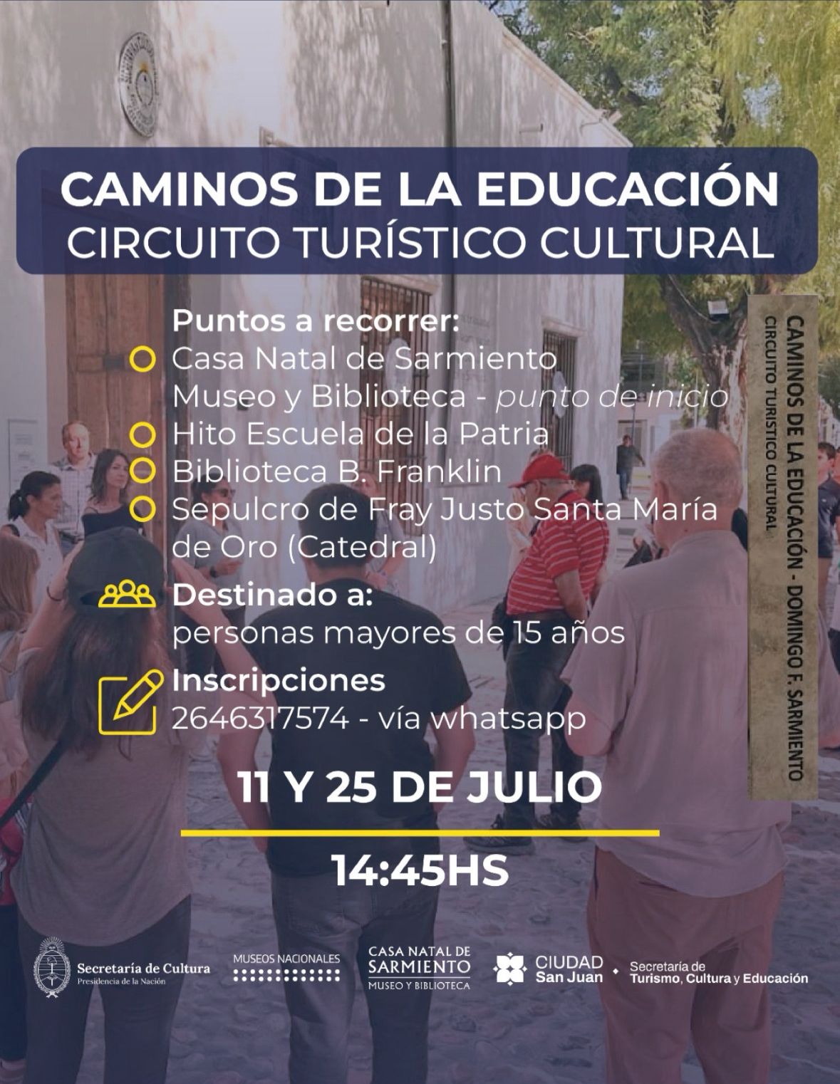 Organizado por la Municipalidad de la Ciudad de San Juan, este recorrido propone una experiencia enriquecedora que conecta historia, patrimonio y memoria colectiva, visitando los sitios donde Sarmiento se formó y aquellos que impulsó o fundó durante su gestión como gobernador y presidente.