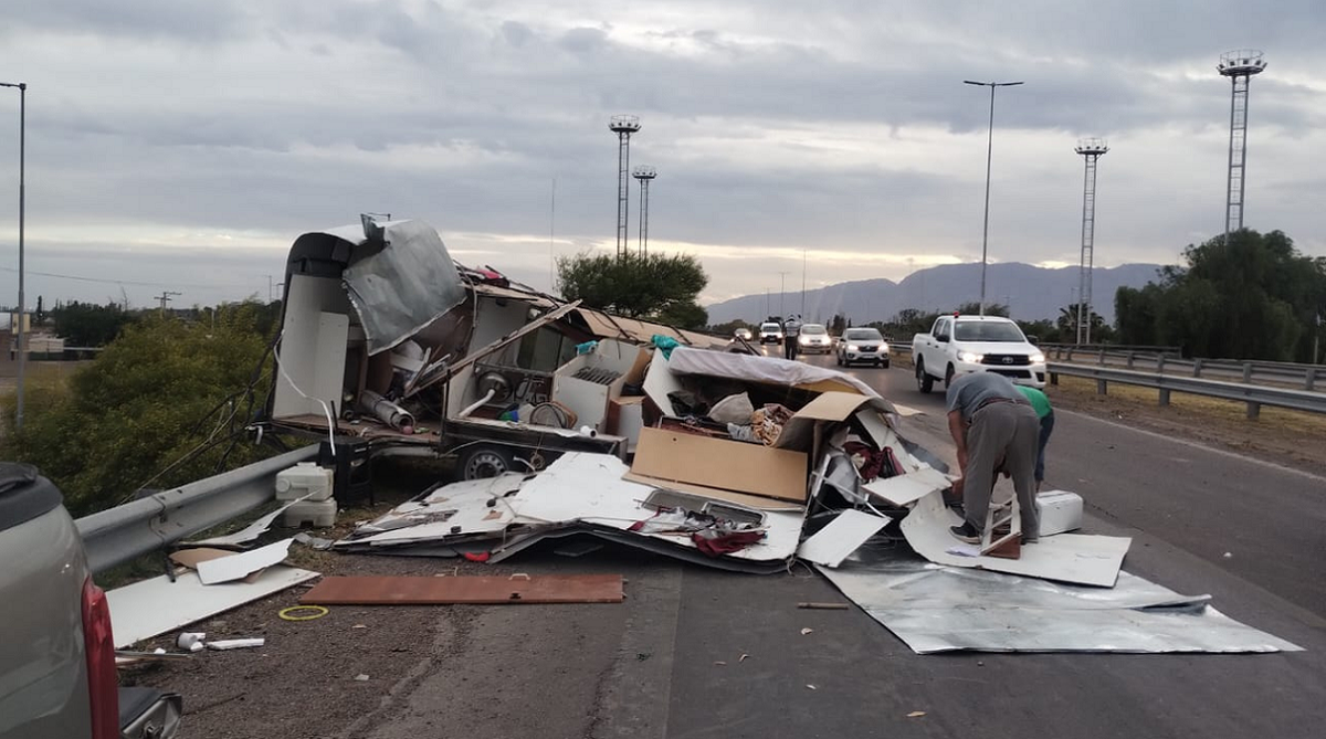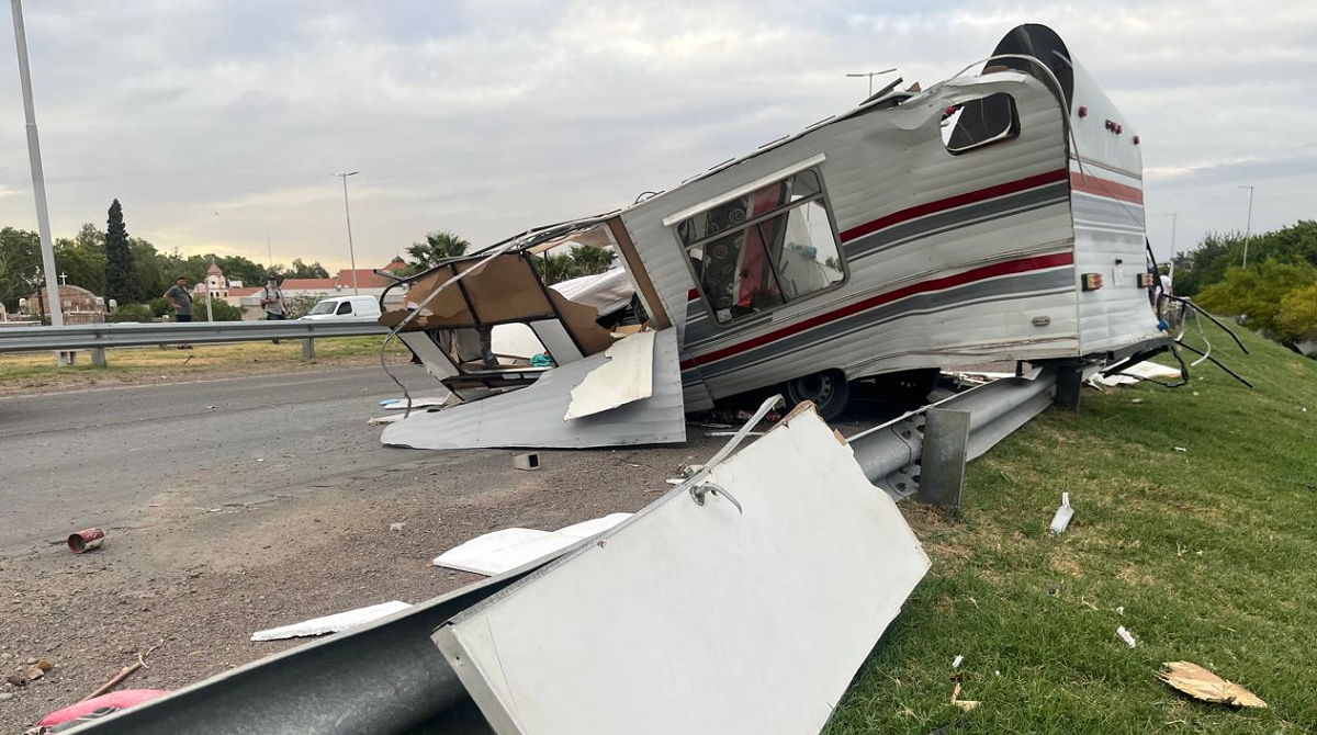 Una casa rodante terminó destruida esta tarde en cercanías de Acceso Sur y calle General Acha. La caravana se desenganchó de la camioneta que la traslada y terminó golpeando fuertemente contra un guardarraíl. Afortunadamente nadie viajaba en su interior.