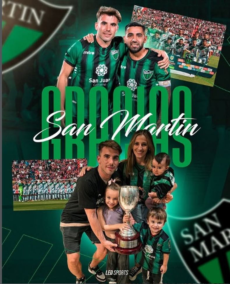 El mediocampista compartió un mensaje cargado de emoción, en el que agradeció al club, a sus compañeros y a los hinchas que lo acompañaron durante su recorrido. En sus palabras, además, dejó abierta la puerta a un posible regreso, remarcando el fuerte vínculo que construyó con la provincia y recordando que su hija es sanjuanina.