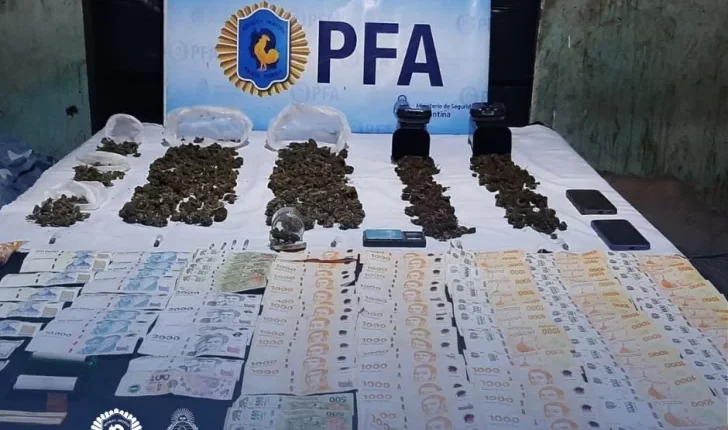 Con la autorización judicial, el 17 de mayo se realizó un allanamiento en el lugar. Allí se secuestraron más de medio kilo de marihuana, varios cigarrillos armados, balanzas de precisión, teléfonos celulares, más de $300.000 en efectivo y una suma en dólares, entre la que se detectó al menos un billete falso.