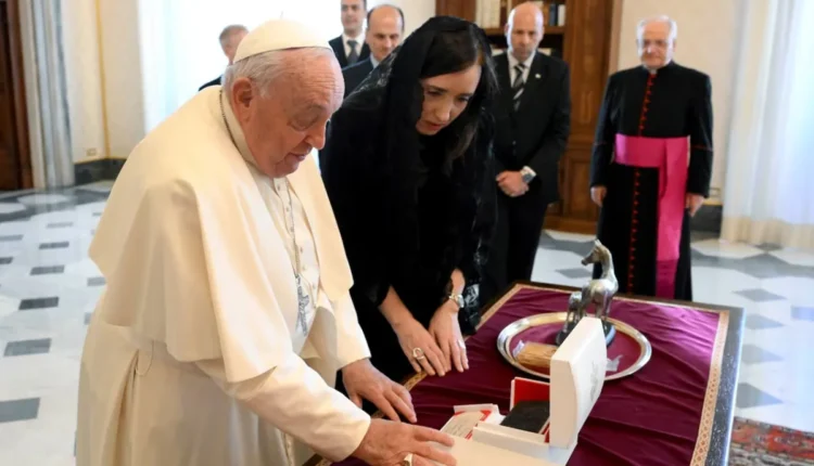 “Todavía vivo y usted, ¿sobrevive?”, le respondió el papa a la vicepresidenta cuando le preguntó cómo se encontraba, después de saludarse afectuosamente con un beso y estrecharse la mano, según las imágenes difundidas por la Santa Sede. A lo que ella respondió: “Yo también”, antes de mostrar su “alegría por verle parado”, ya que Francisco no usó la silla de ruedas que usa habitualmente por sus problemas de movilidad.