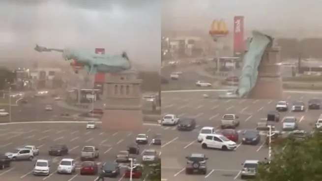 Cómo fue la caída de la réplica de la Estatua de la Libertad