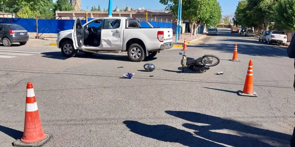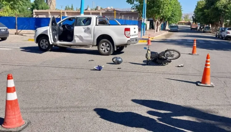 Un fuerte accidente de tránsito se registró este jueves pasado el mediodía en el departamento Rawson y dejó como saldo a un motociclista hospitalizado. El siniestro ocurrió en la intersección de Avenida España y calle Estados de Israel, un cruce que cuenta con semáforos.