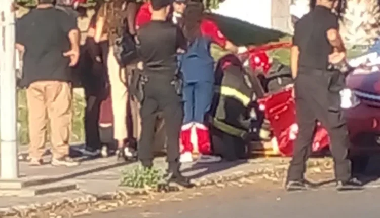 Violento choque frente al Parque de Mayo: un herido atrapado y operativo de rescate