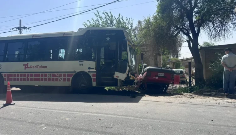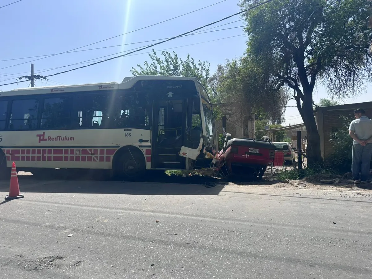 Un automóvil volcó luego de ser embestido desde atrás por un colectivo de la Red Tulum en calle General Acha. El siniestro ocurrió cuando ambos vehículos circulaban de norte a sur y, al llegar a la intersección con calle 6, el auto redujo la marcha para girar.