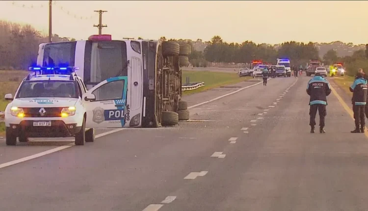 El dramático episodio ocurrió en el kilómetro 142 de la Ruta 2, sentido a Mar del Plata y el vehículo de dos pisos que salió de la localidad de Morón quedó completamente volcado sobre la banquina.