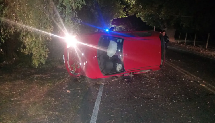 El hecho ocurrió pasadas las 22:15 en calle Rodríguez, cuando María Victoria Rodríguez, al mando de un Fiat Palio, realizó una maniobra brusca que derivó en el vuelco del vehículo.